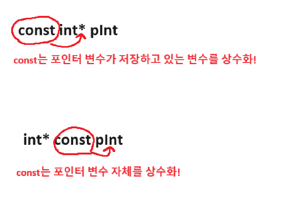 이때 const를 통해 포인터 변수가 저장하고 있는 변수를