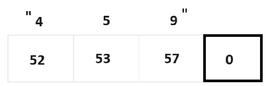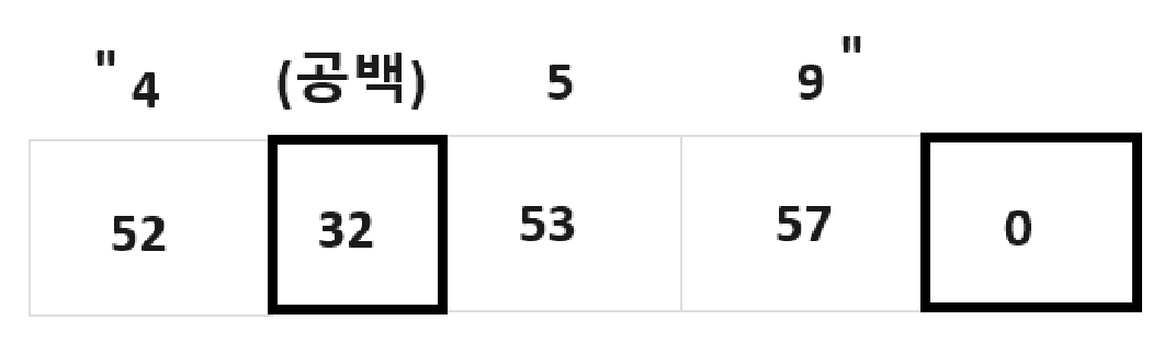 ASCII 코드를 보면 4를 표현하기 위해 첫 번째 공간에는 52가 들어가야 합니다.