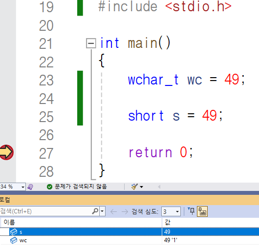문자를 표현하는 wchar_t형 변수 wc에 49가 대입되었죠?