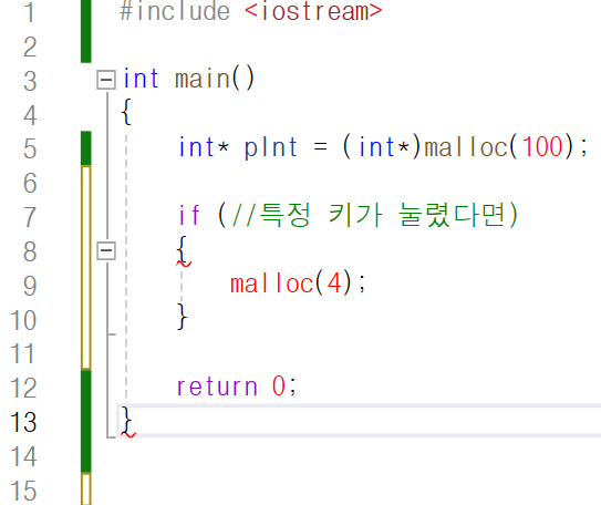 그래서 위 코드처럼 동적 할당한 공간을 사용할 때에는