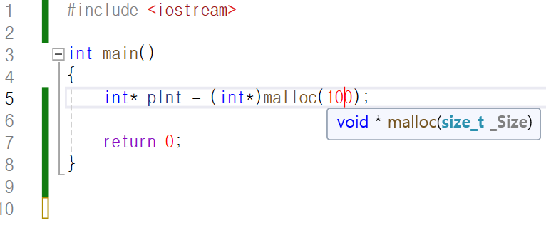 malloc 함수는 인자를 void형으로 받고 있습니다.