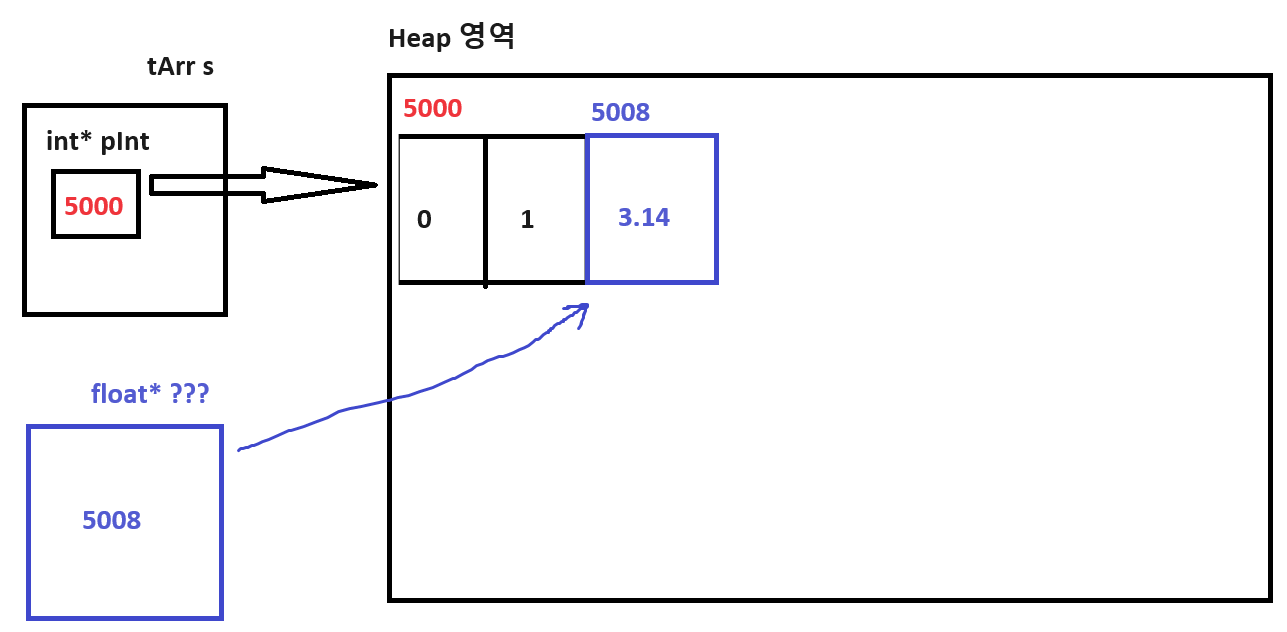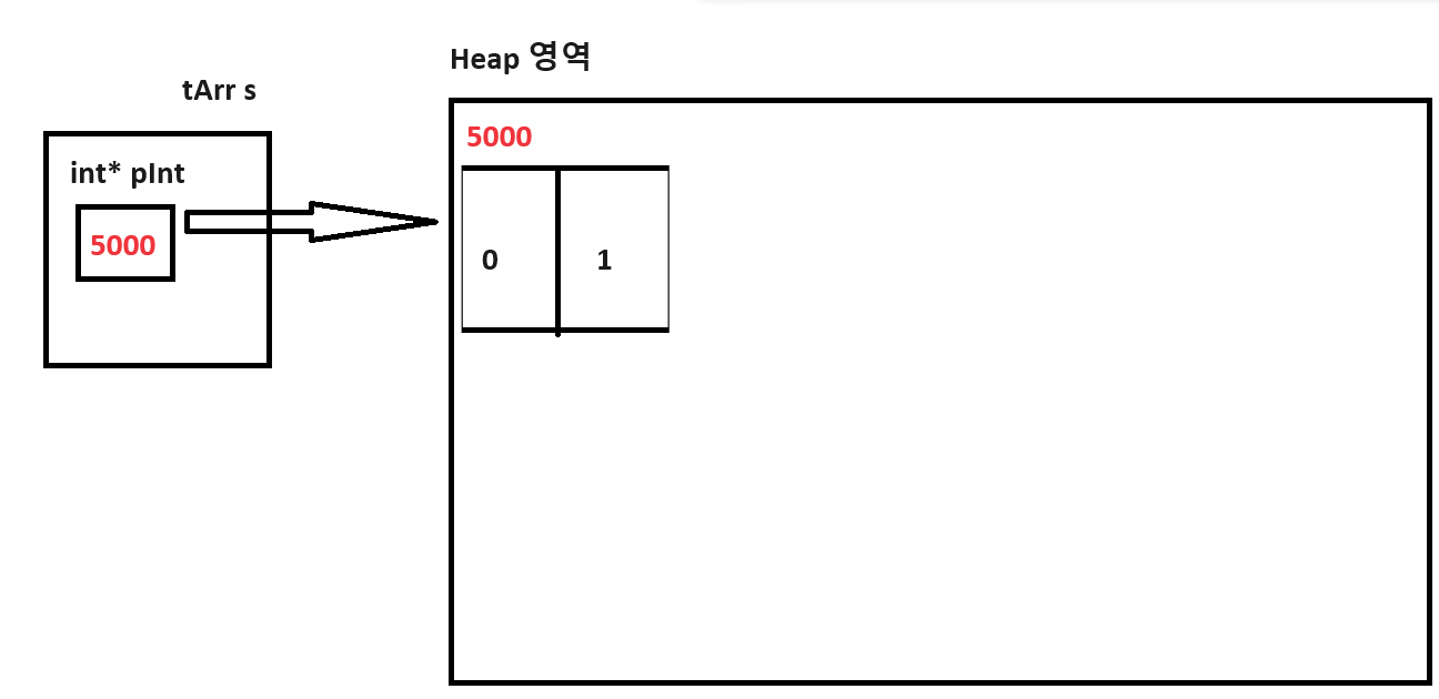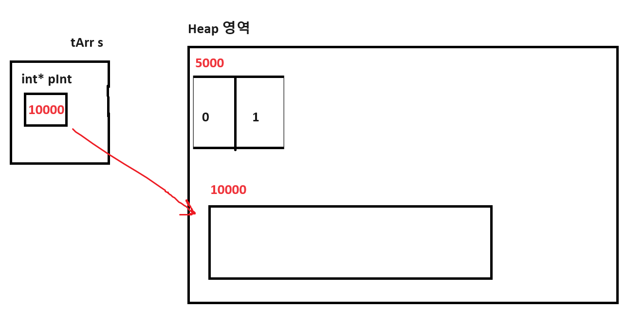 또한 객체 s 내부에, 동적 할당된 공간을 가리키고 있는 pInt를 통해