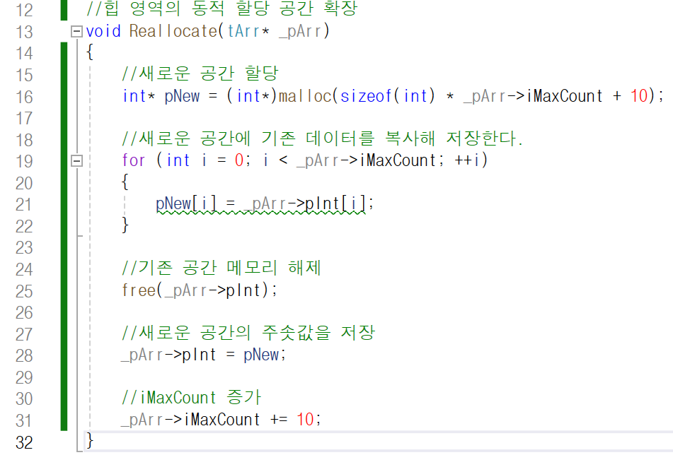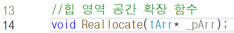 공간을 확장하는 Reallocate 함수를 선언하고