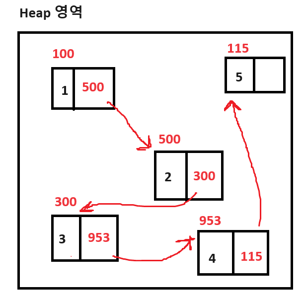 이전 공간에 다음 공간의 주솟값을 저장하고 있는 것이죠.