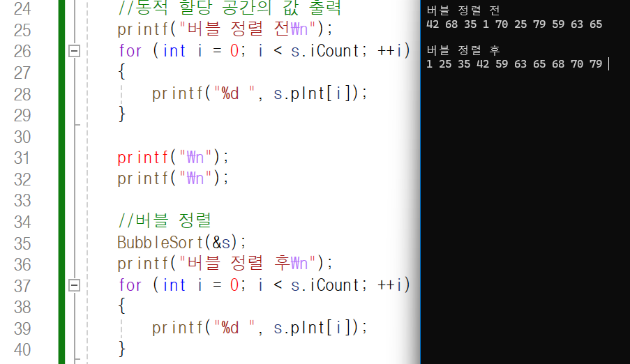 버블 정렬 전 가변 배열에 있는 값들을 출력하고