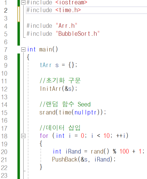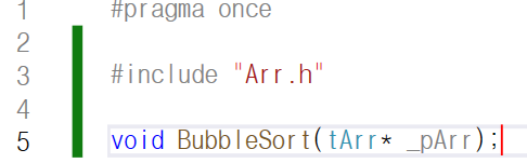 이후 BubbleSort.h 파일을 만들어 BubbleSort 함수를 선언하고,