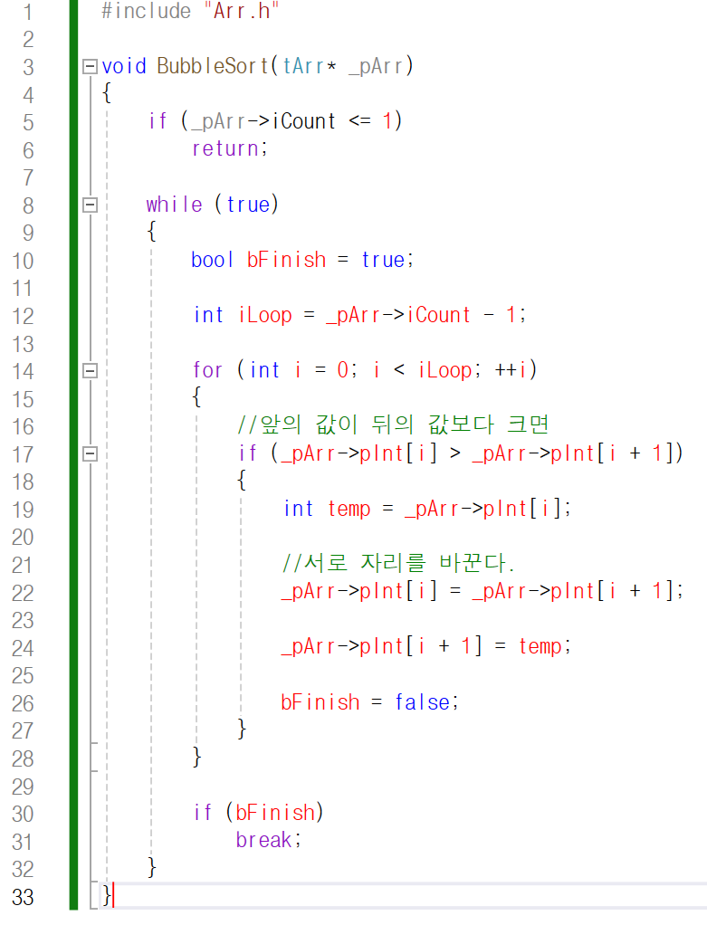 정렬이 필요하여 if문에 들어가면 bFinish의 값이 false가 되므로