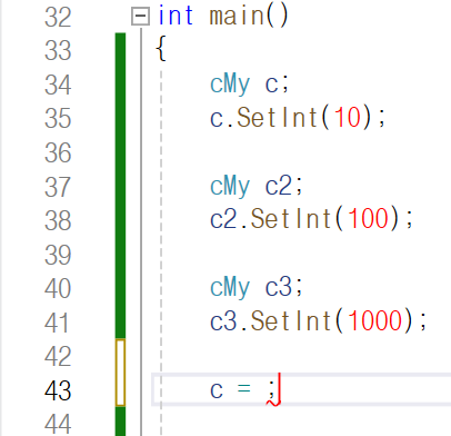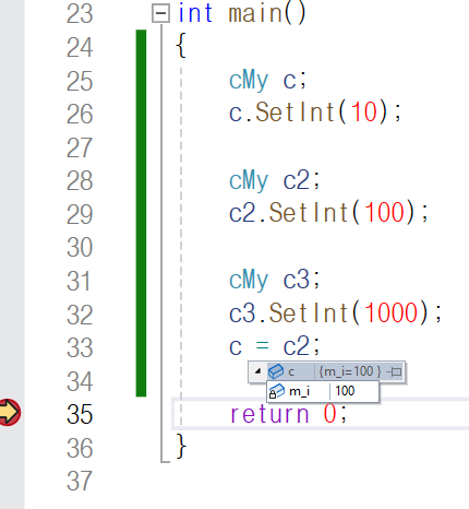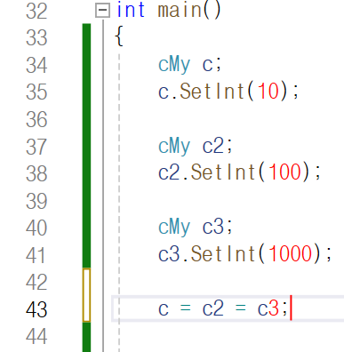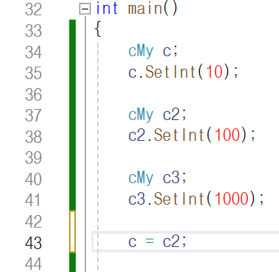cMy형 객체 c에 cMy형 객체 c2의 값을 대입하였습니다.