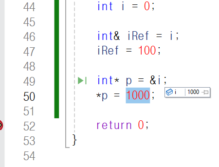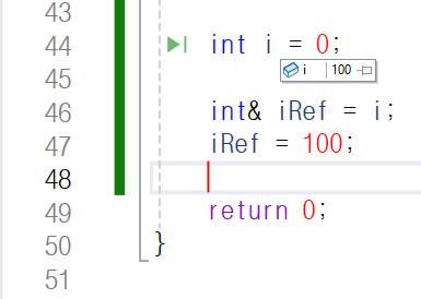 iRef의 값을 100으로 바꾸면 i의 값이 100으로 바뀝니다.