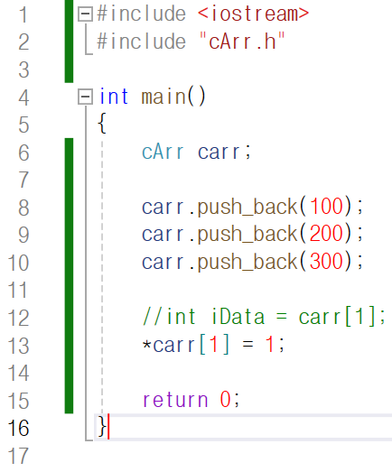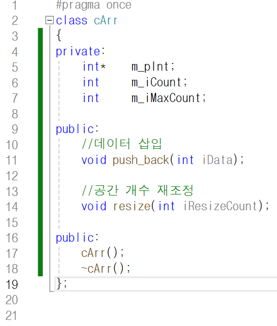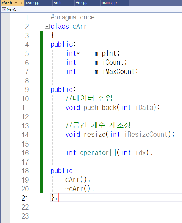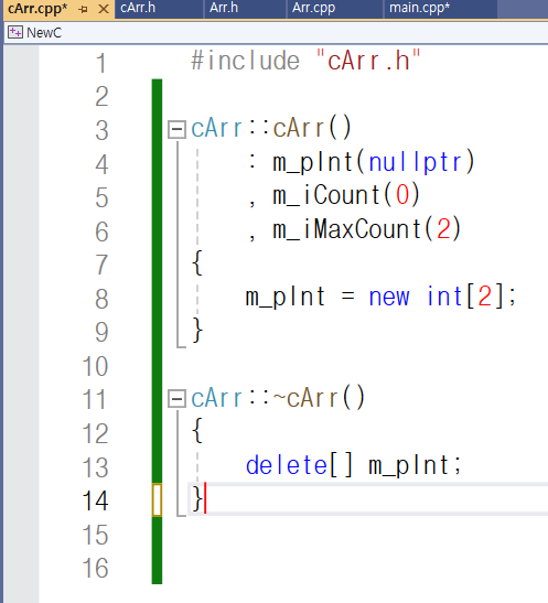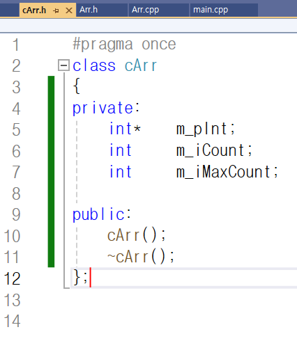 cArr의 멤버 변수와 생성자와 소멸자를 선언하겠습니다.