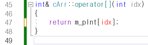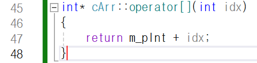 operator [ ]을 통해 배열의 시작 주솟값에서