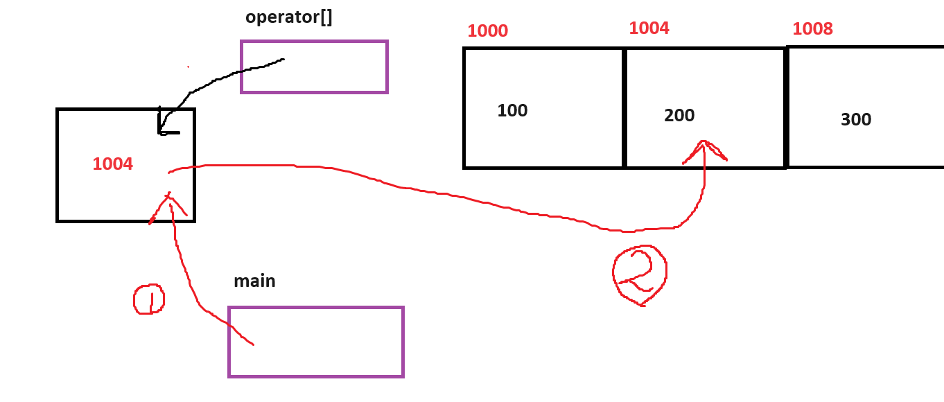 operator[ ]가 반환한 것을 수정하면 마치 1004번지를