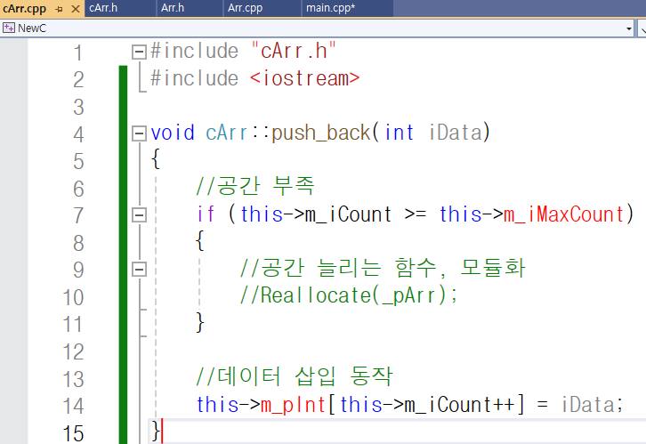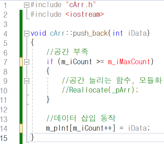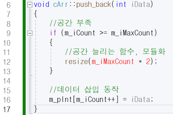이제 가변 배열을 위한 함수를 작성해 보죠.