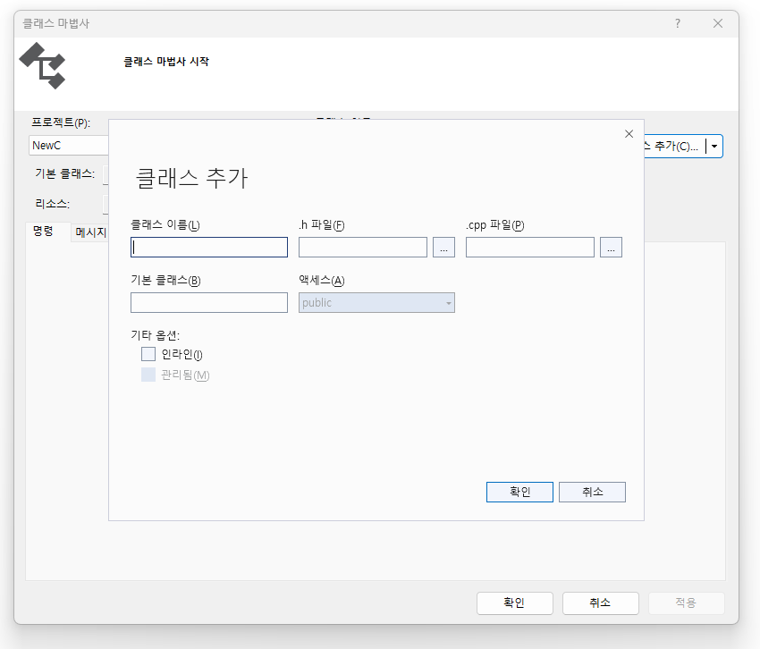 해당 이름을 가진 헤더 파일과 소스 파일이 만들어집니다.