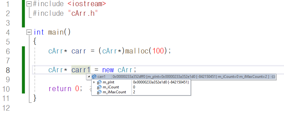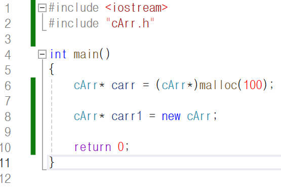 근데 객체 carr을 통해서 동적 할당을 하였고