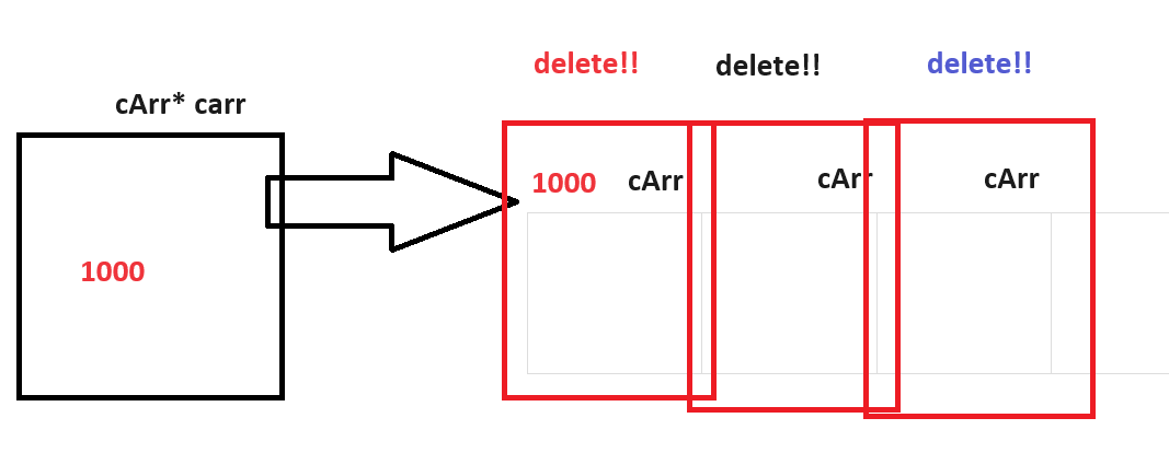 new를 통해 동적 할당한 cArr형 포인터 객체 carr1은