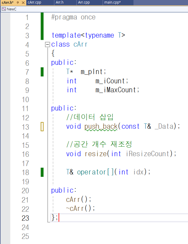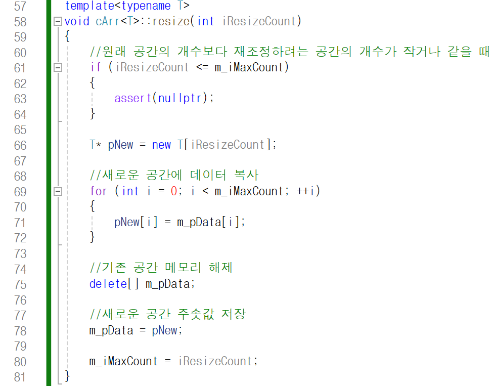 클래스 템플릿의 정의 부분도 작성을 해 주었는데
