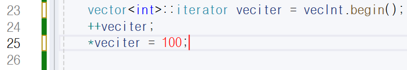 이후 * 연산을 통해 veciter에 100을 대입하면 되겠죠.