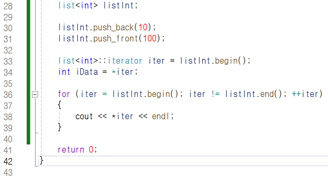 listInt.begin(), 즉 리스트가 가리키는 첫 번째