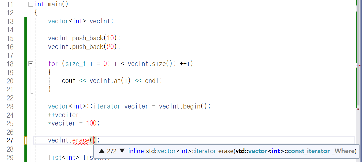 ++veciter 코드를 추가한 후 대입하면 됩니다.