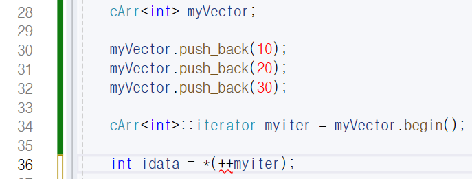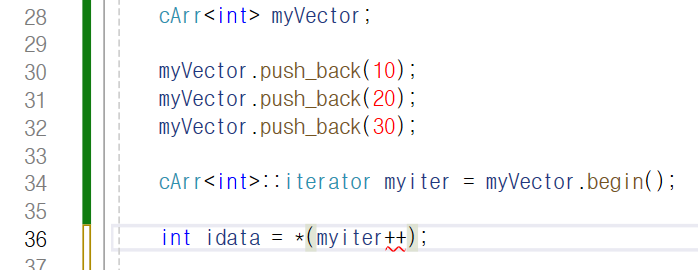 이제 myVector이 가리키는 배열의 시작 주솟값을 받으려고 하는데