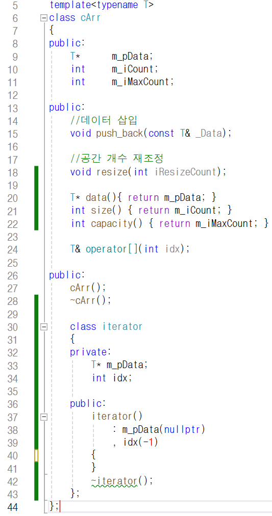 클래스 템플릿을 작성한 cArr.h 파일로 가서
