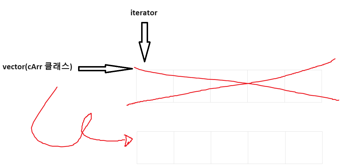 vector를 가리킬 수 있도록 cArr형 포인터 멤버 m_pArr를 추가하였습니다.