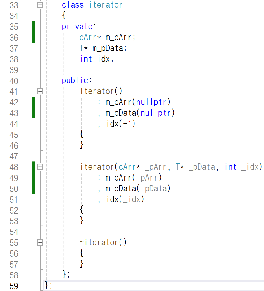 iterator의 멤버 m_pData가 가변 배열의 시작 주솟값을