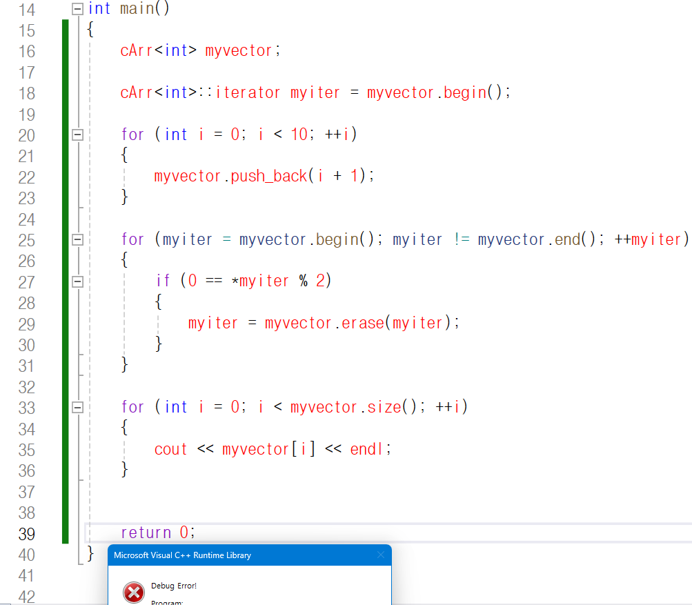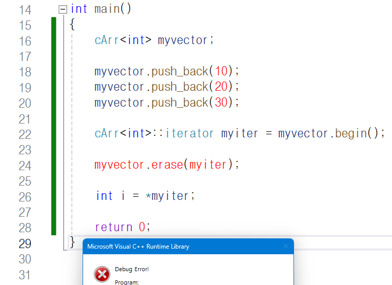 직접 만든 erase 함수에도 이러한 경우를 재현하기 위해