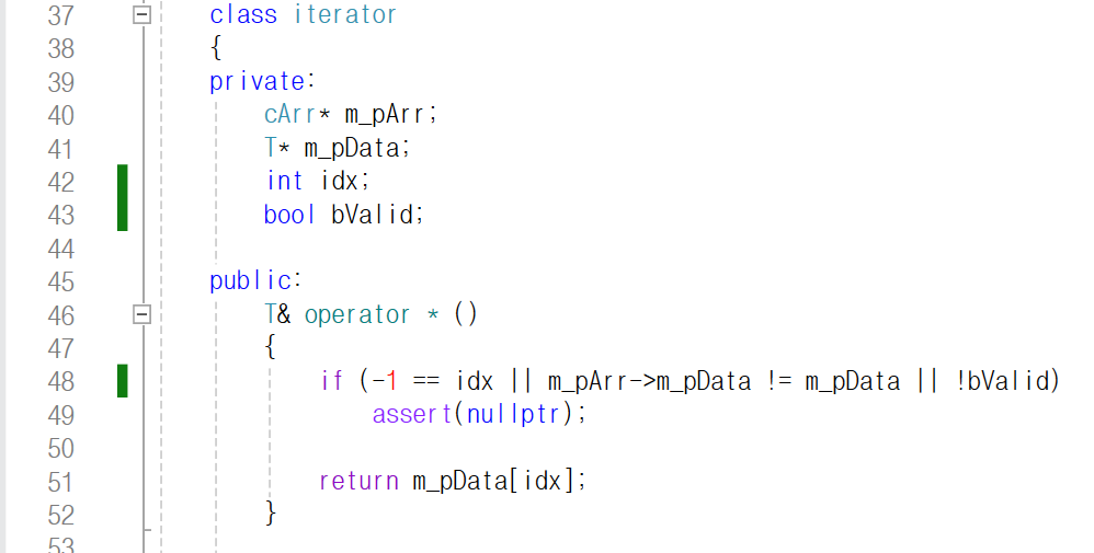 253번째 줄에 iterator의 멤버 변수 bValid가