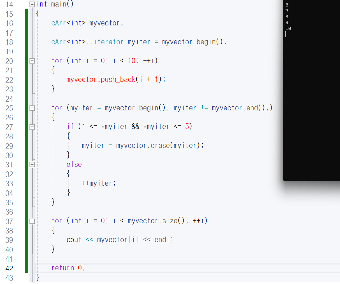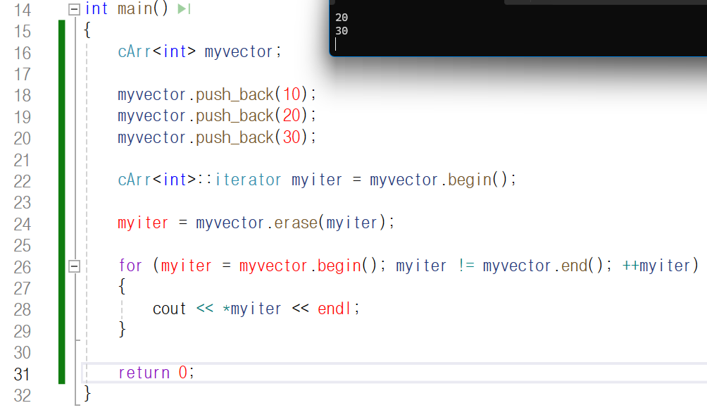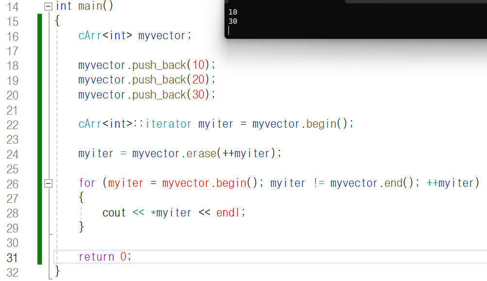 현재 iterator는 vector의 마지막을 가리키고 있습니다.