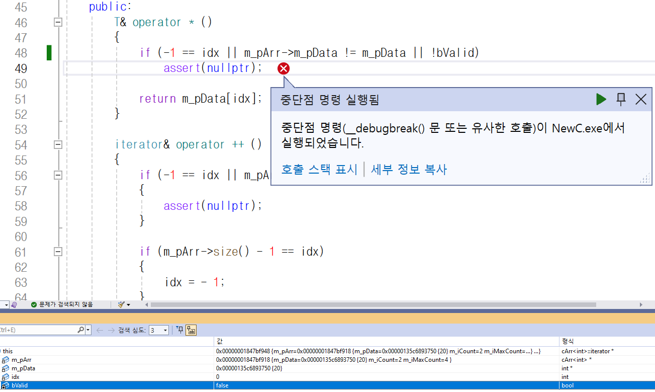 iterator의 멤버 bValid의 값이 false가 된 것이죠.