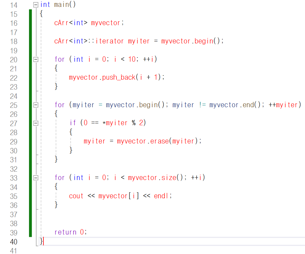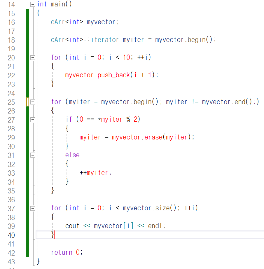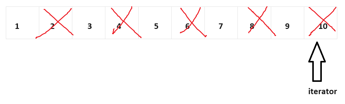 즉 짝수이면 해당 공간을 erase 함수를 통해 제거합니다.