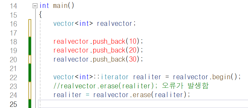 아래 그림은 if 문에 있는 erase 함수로 인해
