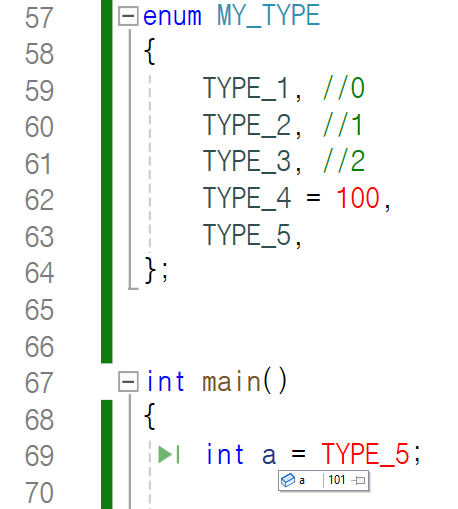 변수 a에 TYPE_5를 대입하여 확인해 보니