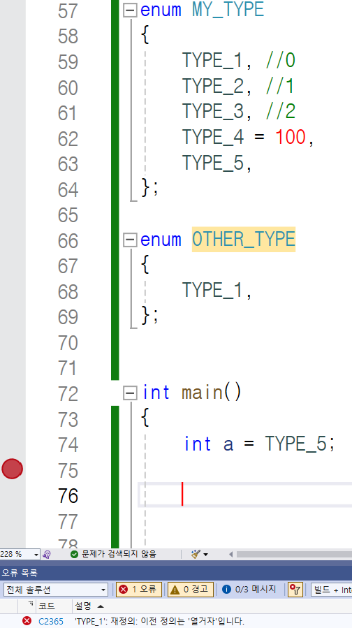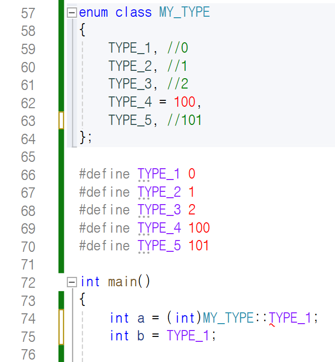 62번째 줄에 TYPE_4라는 키워드를 적고 100을 대입했습니다.
