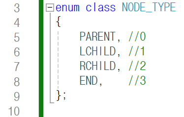 한 번에 저장할 겁니다. enum class NODE_TYPE에서 END라는 키워드를