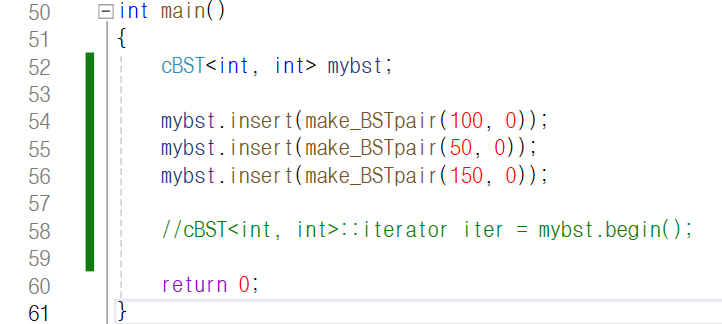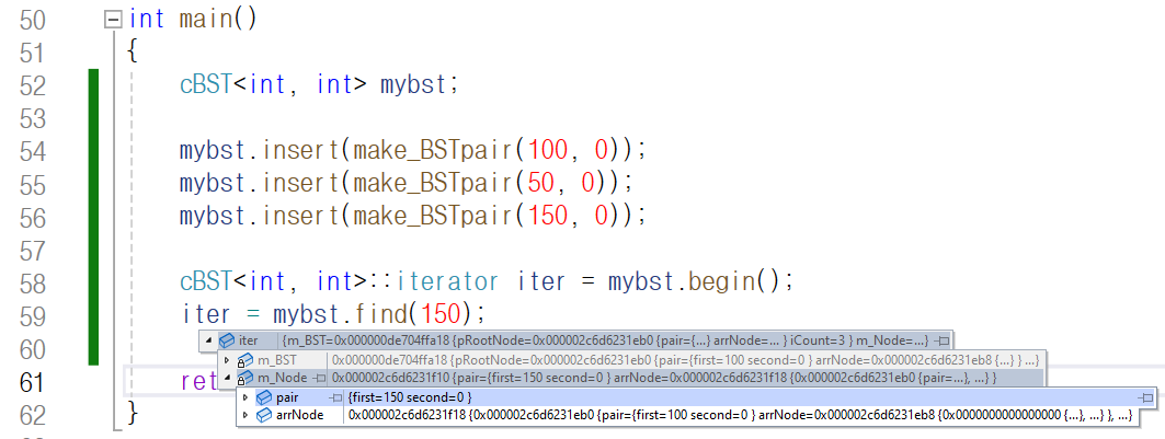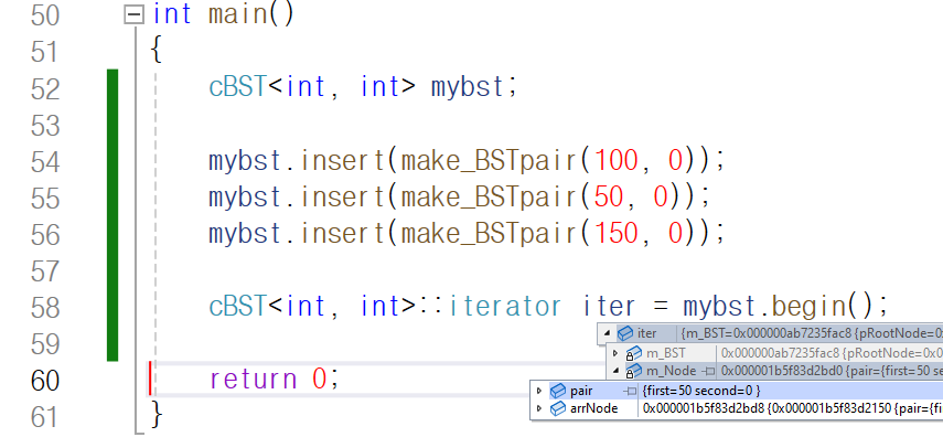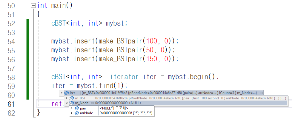 정말 키-값이 50인 노드가 iterator에 대입되었습니다.