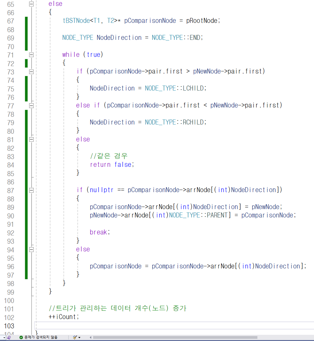반복하는데요, pComparsionNode가 가리키는 노드의