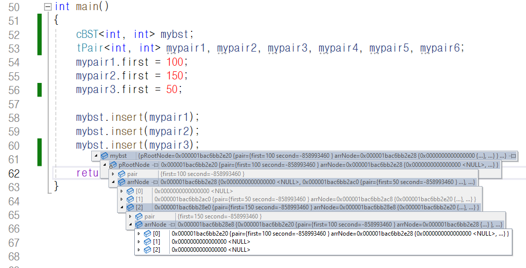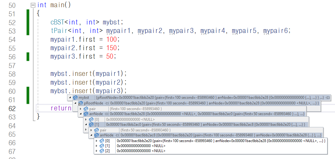 그래서 nullptr로 초기화하였고 멤버 pair는 insert 함수를