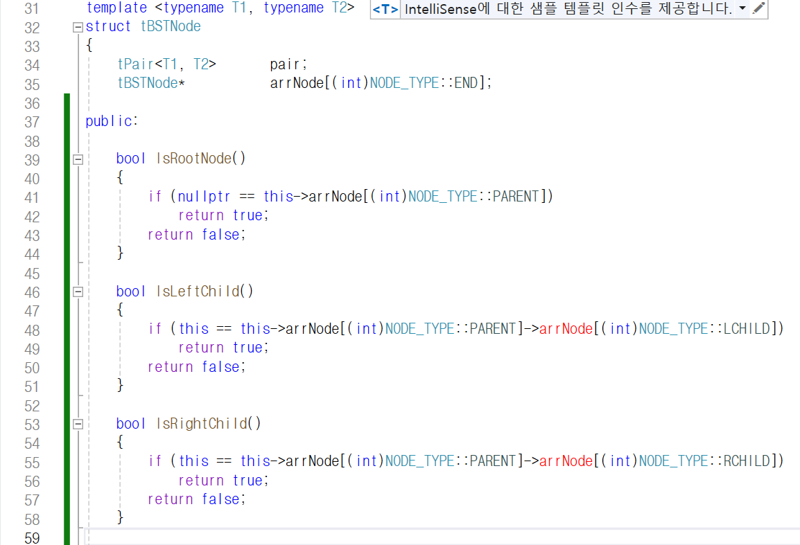 노드 역할을 하는 tBSTNode 클래스 템플릿에