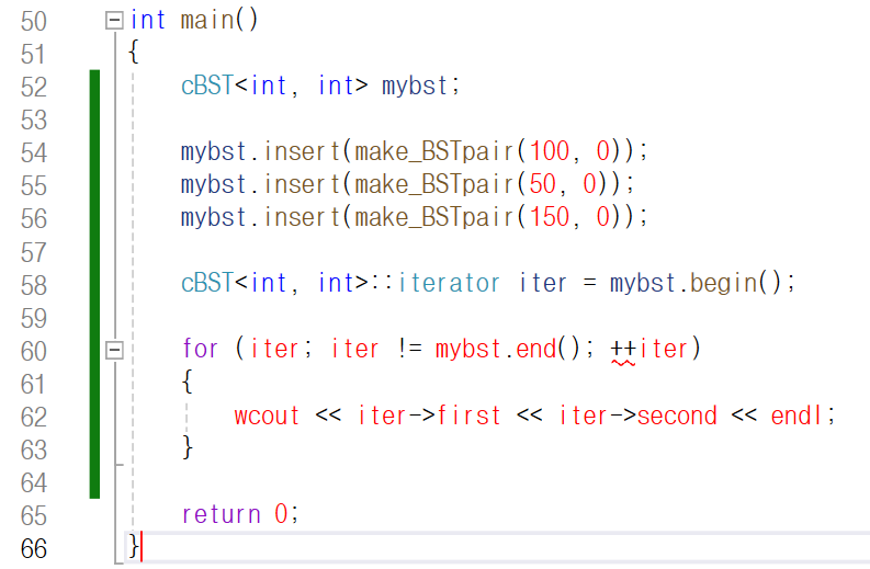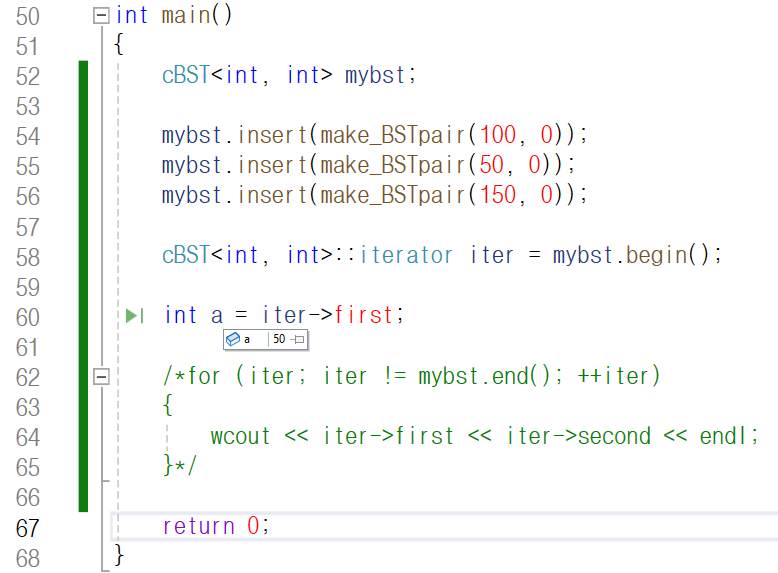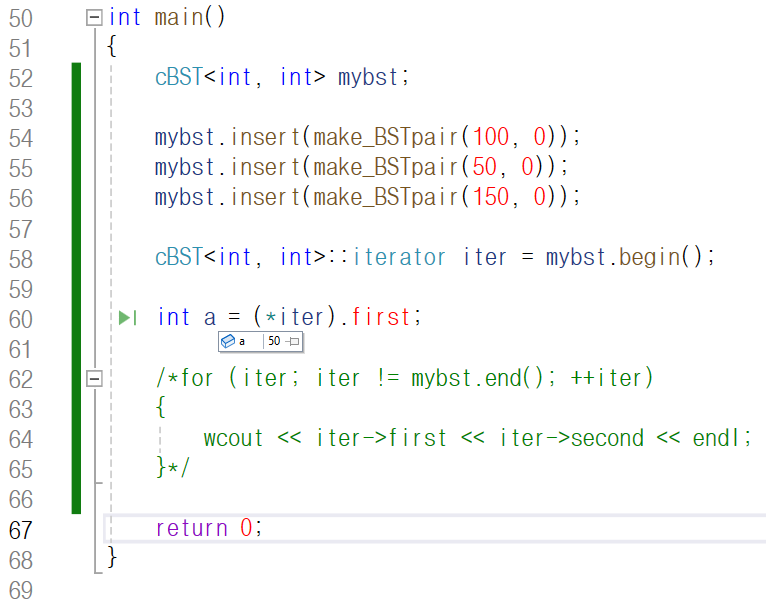 iterator가 키-값이 50인 노드를 가리키고 있는 상황에서
