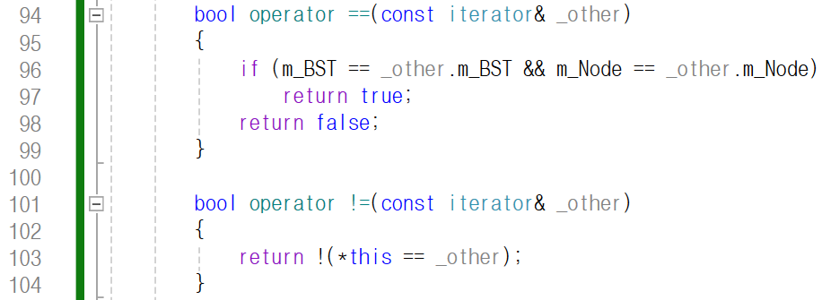 비교 대상이 되는 다른 iterator를 const형 레퍼런스로