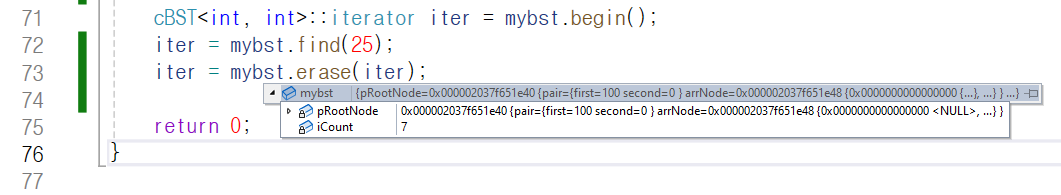 iterator의 값을 확인해 보니 25의 중위 후속자였던