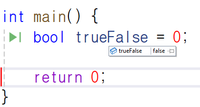 그래서 변수 trueFalse의 값을 확인한 결과 0이 담겼습니다.