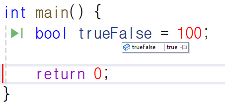 bool형 변수 trueFalse라는 변수에 100을 넣었습니다.