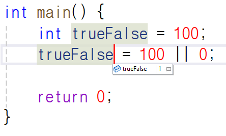 변수 trueFalse에는 100을 넣었습니다. true죠.