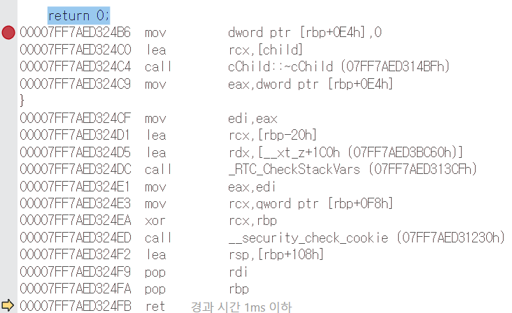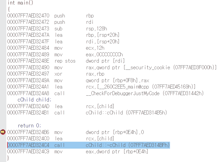 디스어셈블리 창에서 소멸자의 동작을 확인해 보면