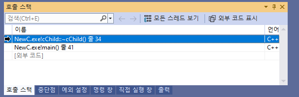 F11을 누르자 자식 클래스의 소멸자가 먼저