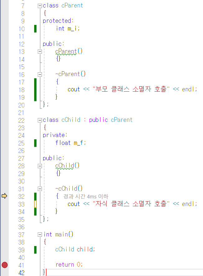이를 확인하기 위해 main 함수 종료 직전, 41번째 줄에 있는